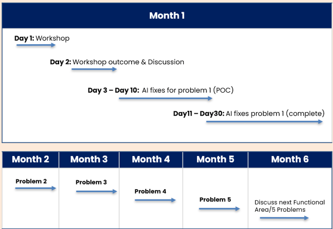 With Agentic AI implementation, same problems can be fixed in short term (5-6 months), highlighted in green below