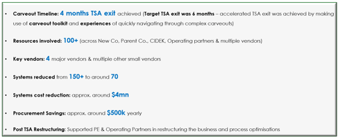 CIDEK is available to support and keen to discuss any carveout programs for PE investors and PE backed PortCos.