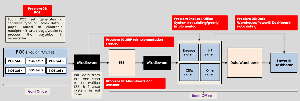 - System & integration layer issues (highlighted in red) causing inefficiencies and operational gaps