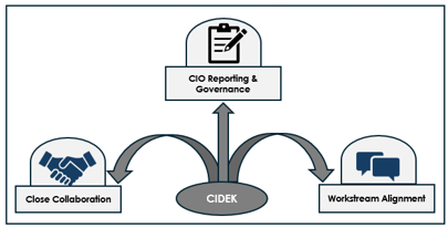 CIDEK doubles as the advisor to NewCo IT leadership, or assumes IT leadership role providing pragmatic advises to CXOs in absence of NewCo's IT leadership.